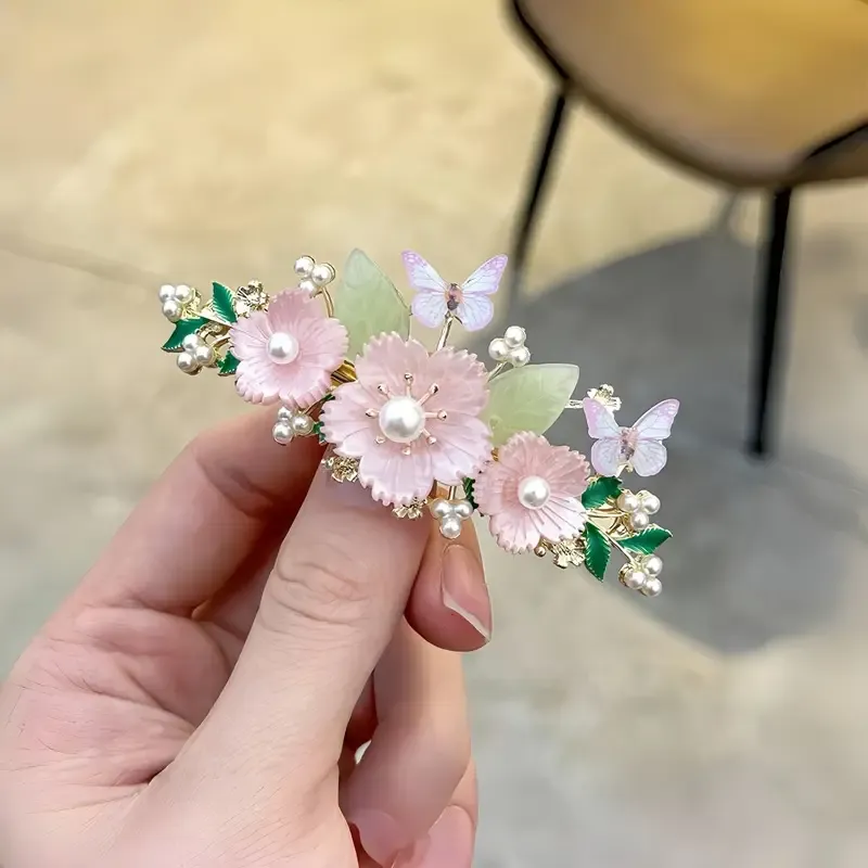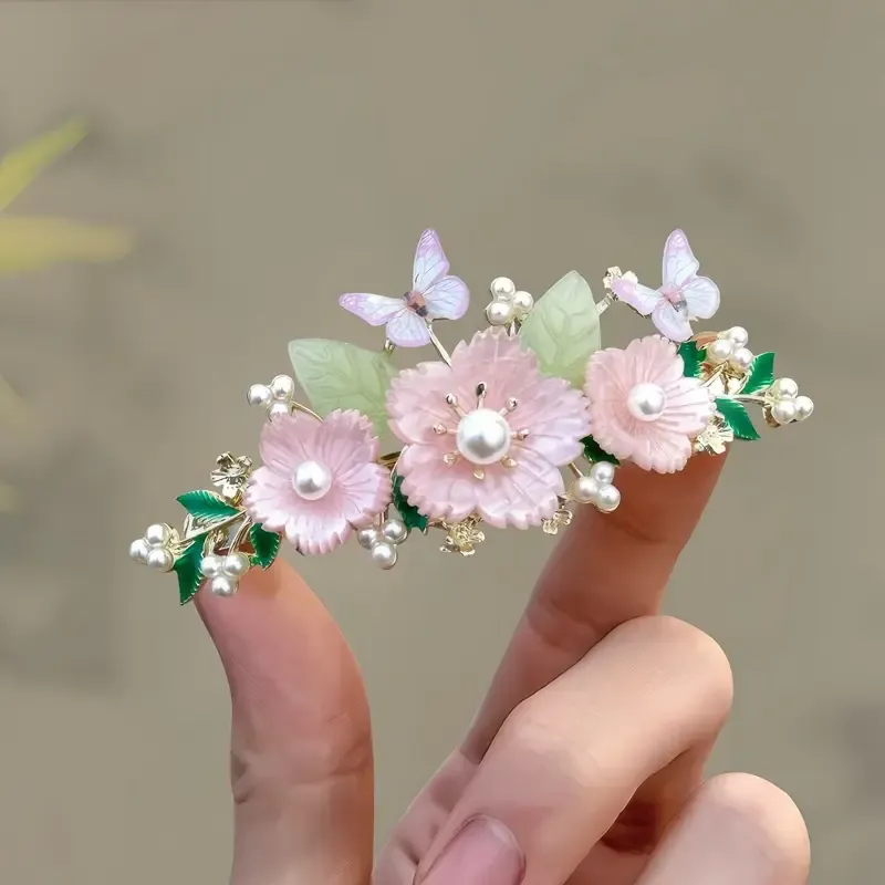 2. Emblazoned with flowers and butterflies, this new Chinese hairpin embodies oriental aesthetics, embodying a uniquely Chinese romance and grace.